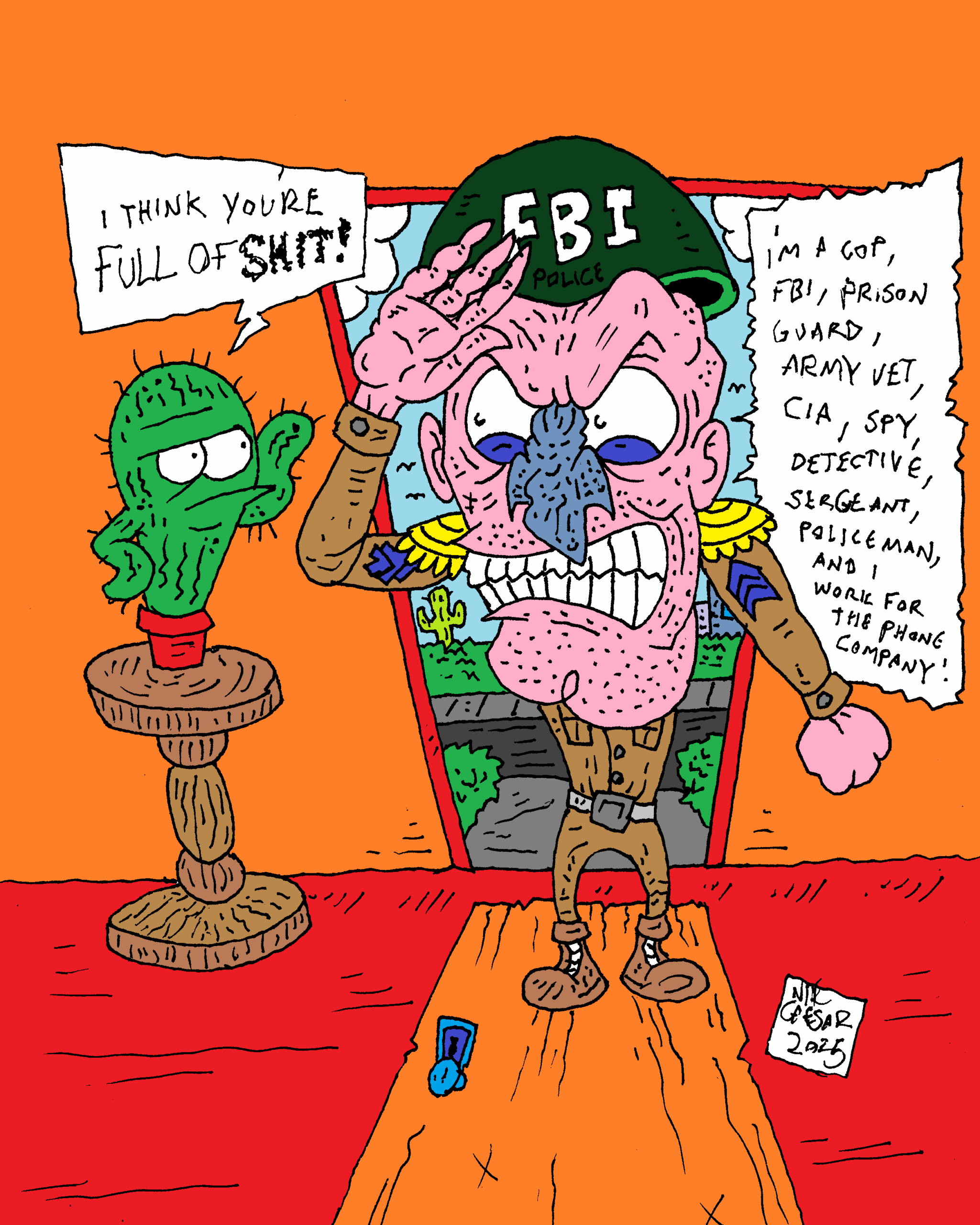 PLA FRIENDS AND STAFF: Nik Caesar from scary-art.com is the unofficial PLA artist. Buy PLA designs from Nik’s Spreadshirt store. You might also like the cactus and PLA designs in Laugh Track Matt’s store. Clownsec does a lot of cool things for PLA so go honk the PLAnet. Watch JIAD’s Calls of Mass Confusion and listen to a few of the prank call shows over at World of Prank Calls. Joe DiVita and Vista Blue do lots of music for us, but so do lots of other people, so visit the SPS music page for a very incomplete list.